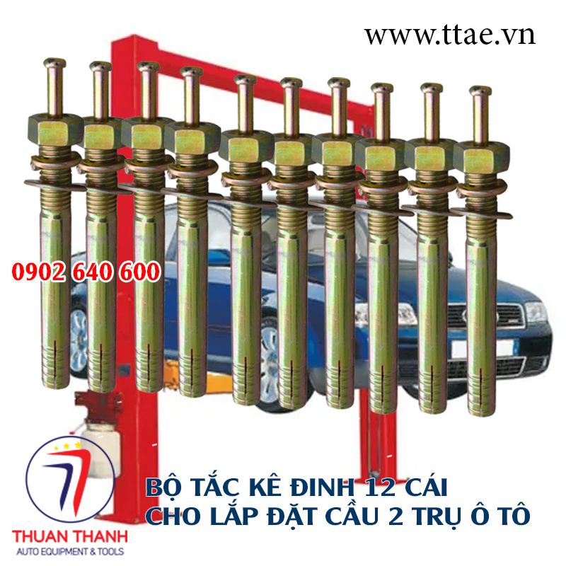 Công ty TNHH Thiết Bị Ô Tô Thuận Thành là nhà phân phối thiết bị dụng cụ đồ nghề thiết bị sửa xe ô tô chính hãng tại thị trường Việt Nam. Tất cả các sản phẩm mà chúng tôi cung cấp đều có nguồn gốc và xuất xứ rõ ràng. Khách hàng sẽ được cung cấp đầy đủ CO&CQ về xuất xứ cũng như chứng chỉ chất lượng. Do đó dòng sản phẩm Tắc kê đinh lắp Cầu nâng 2 trụ do Thuận Thành cung cấp luôn có giá thành và chất lựơng sản phẩm tốt nhất