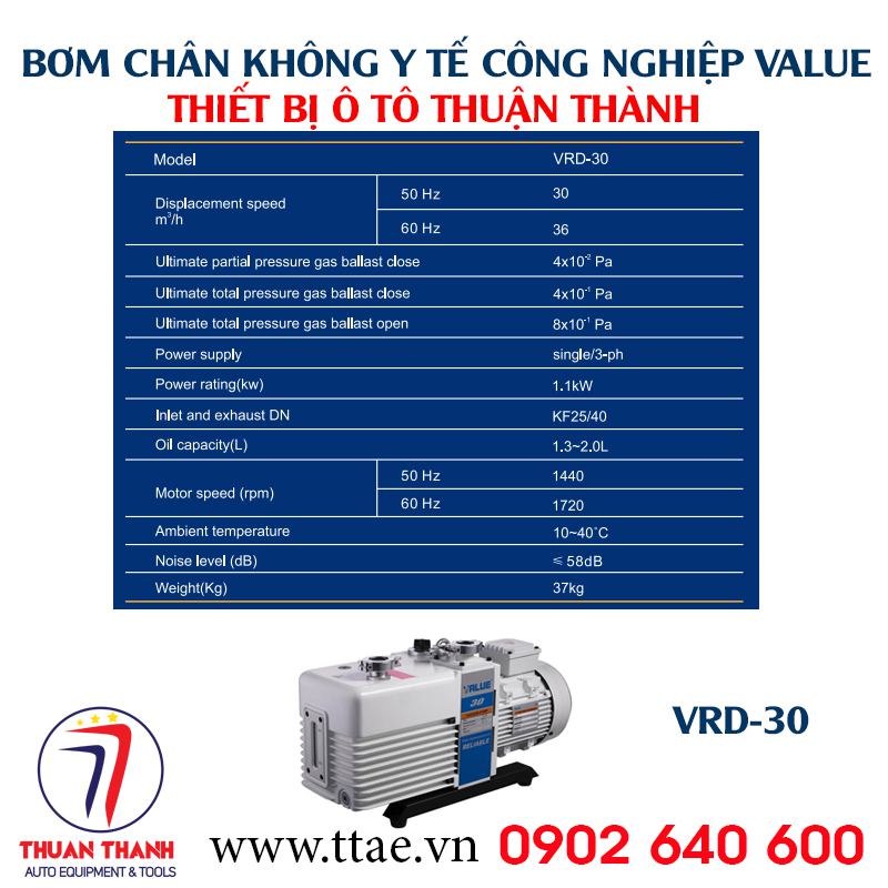 Thông số kỹ thuật máy bơm chân không Value VRD-30