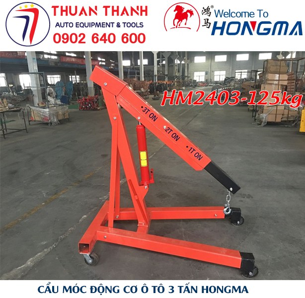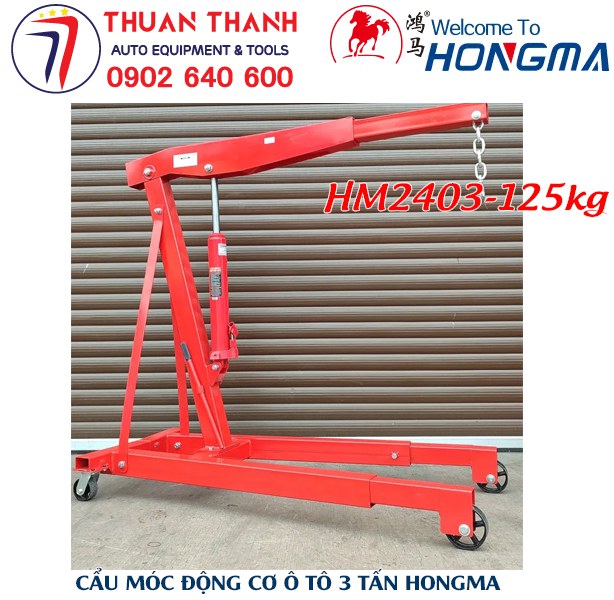 Cẩu móc động cơ ô tô 3 tấn HONGMA HM2403 khối lượng 125kg, khung thép siêu bền, nâng hạ an toàn tuyệt đối. Phân phối chính hãng bởi Thiết Bị Ô Tô Thuận Thành.