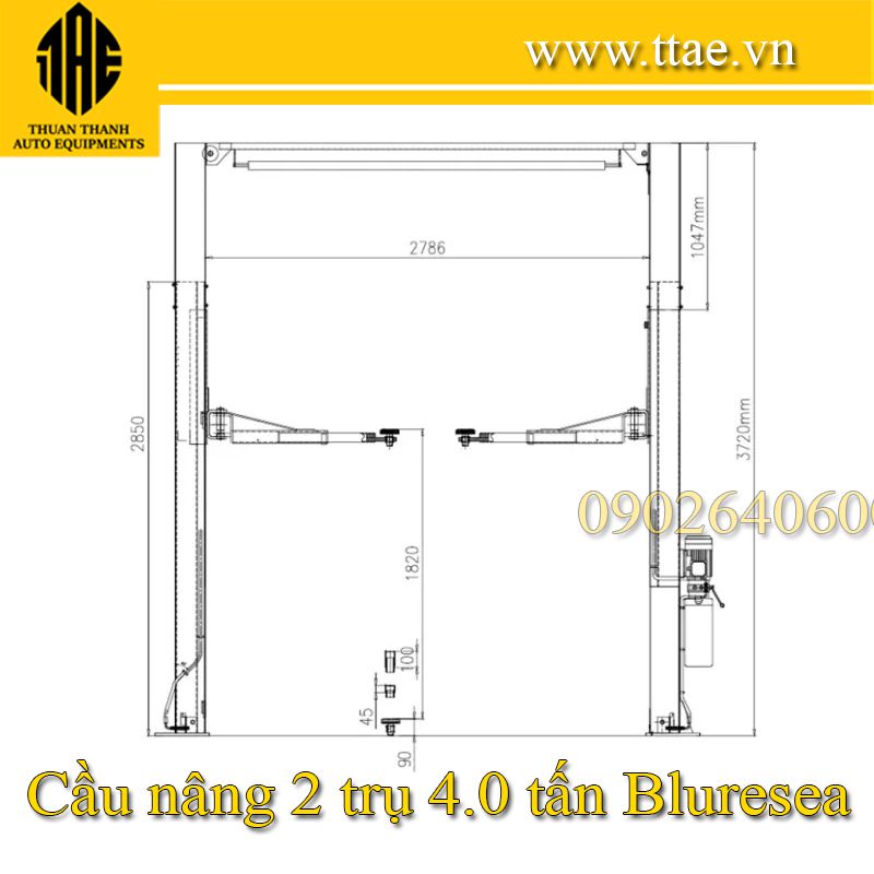 Cầu nâng 2 tru 4 tấn chất lượng cao BlureSea cổng trên