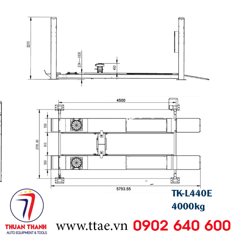 Cầu nâng ô tô 4 trụ tải trọng 4 tấn có kích phụ TEKO TK-L440E