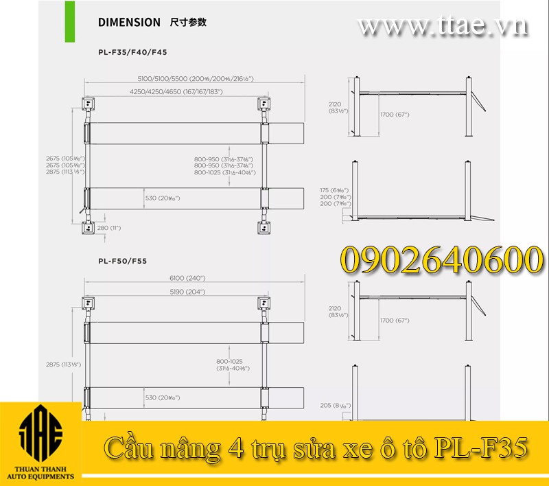 Thông số kỹ thuật cầu nâng 4 trụ 3.5 tấn PL-F35