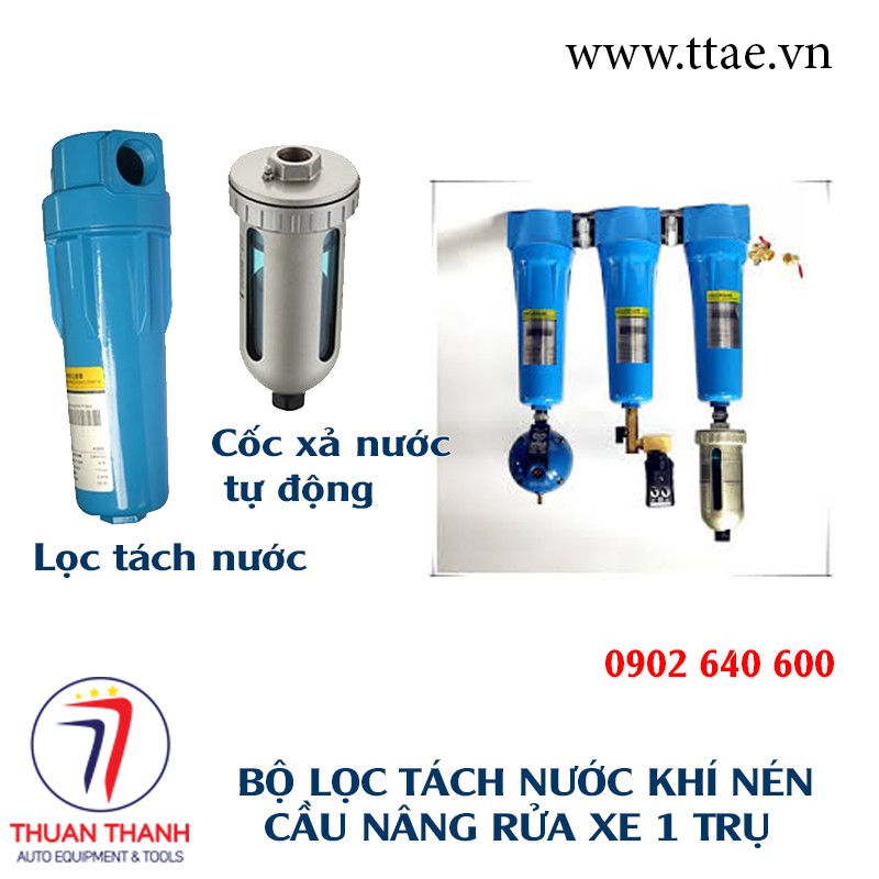 Cụm lọc tách nước xả tự động cần thiết cho mọi cầu nâng rửa xe ô tô, chất lượng cầu nâng và dầu nhớt bên trong cầu nâng 1 trụ.