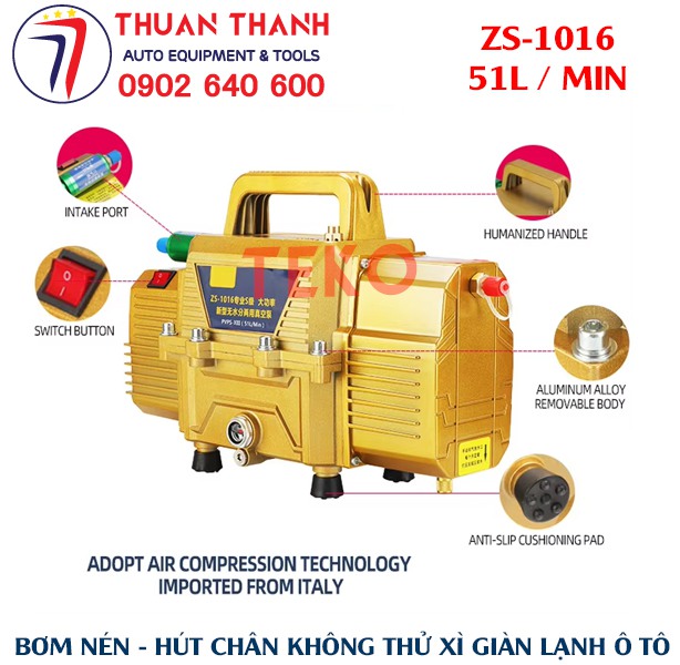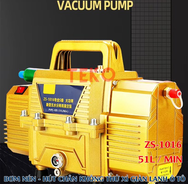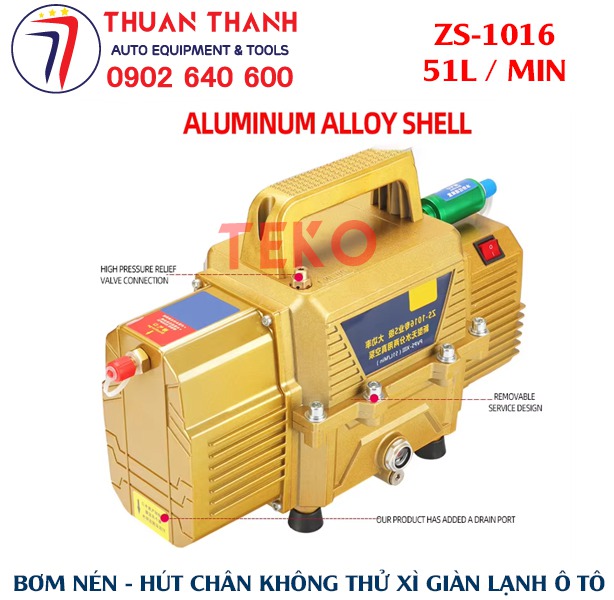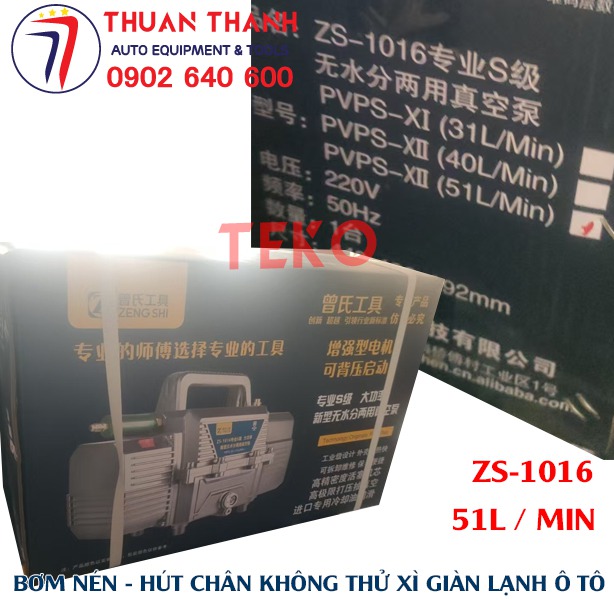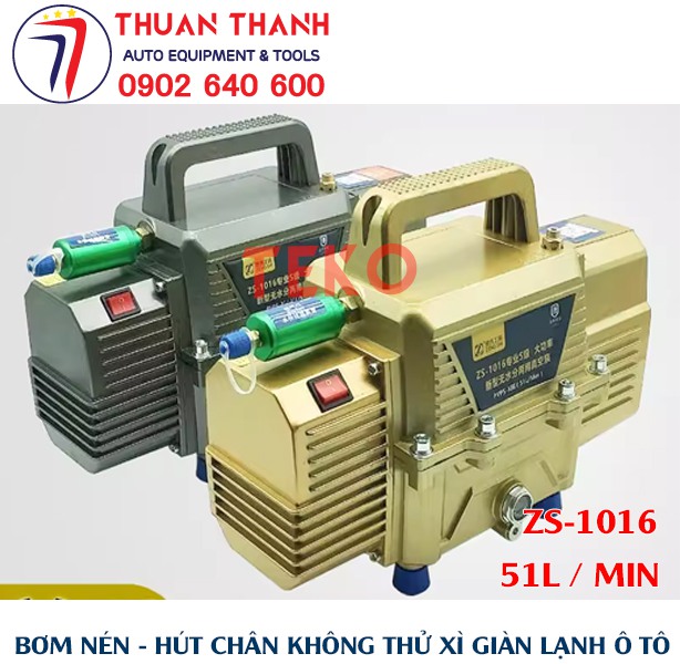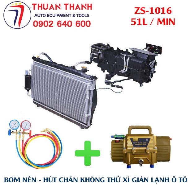 - Bộ bơm hút nén chân không và thử kín giàn lạnh xe ô tô 2 trong 1 cao cấp ZS-1016 với dung tích hút 51L hiệu suất cao có kèm theo lọc tách ẩm và lọc nước bên trong thiết bị. Sản phẩm duy nhất trên thị trường có lưu lượng hút và nén tốt nhất hiện nay tại Việt Nam cho sửa chữa xe ô tô