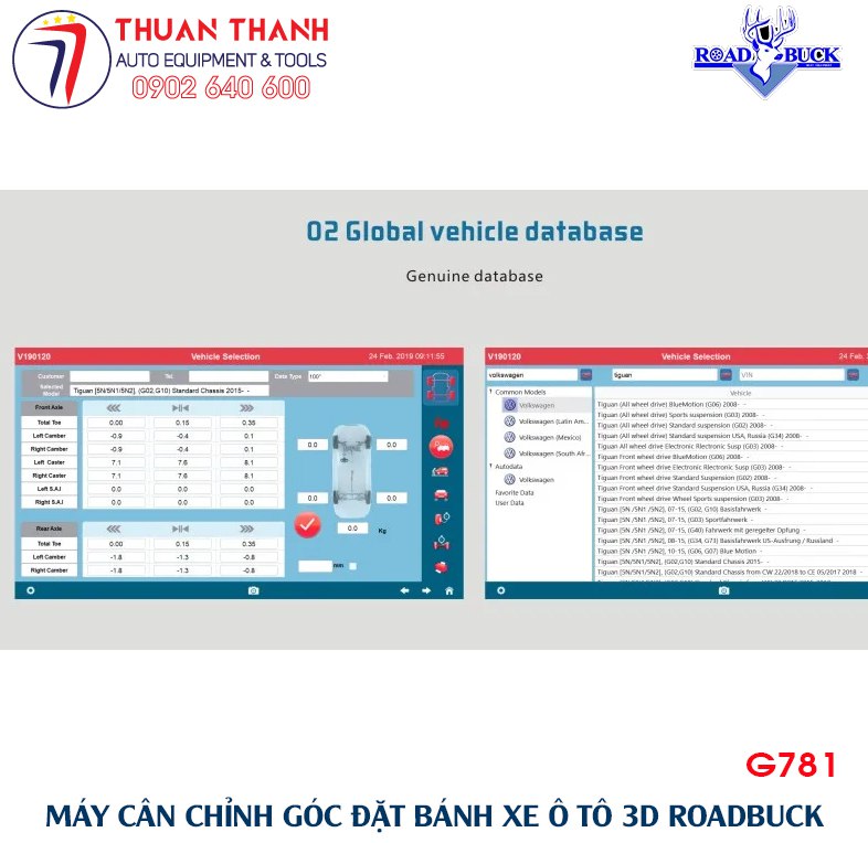 Liên hệ mua máy chỉnh độ chụm bánh xe ô tô Roadbuck G781
