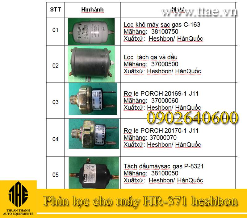 Thiết bị ô tô Thuận Thành là đơn vị chuyên cung cấp máy nạp gas và Phin lọc gas lạnh cho loại gas dung môi chất lạnh R134a. Anh em cần tư vấn về máy nạp gas và phin lọc gas của hãng Heshbon Hàn Quốc có thể liên hệ với TTAE theo thông tin: