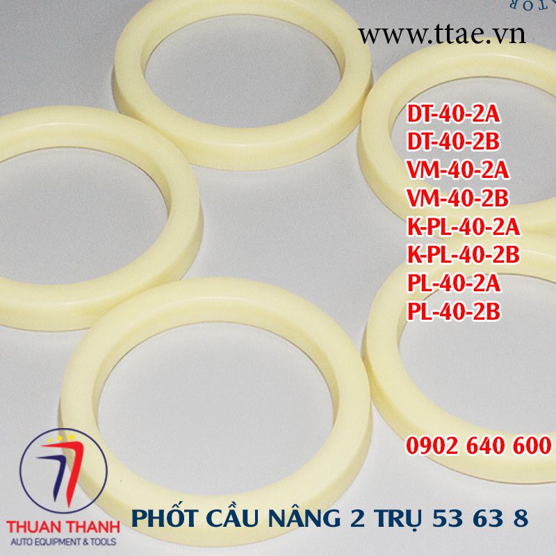 Anh em cần mua phớt hay phốt cầu nâng ô tô 2 trụ cho model: DT-40-2A, DT-40-2B, VM-40-2A, VM-40-2B, K-PL-40-2A, K-PL-40-2B, PL-40-2A, PL-40-2B với mã số 53-63-8 hoặc 63-53-8 có thể liên hệ với thiết bị ô tô Thuận Thành để được tư vấn trực tiếp.