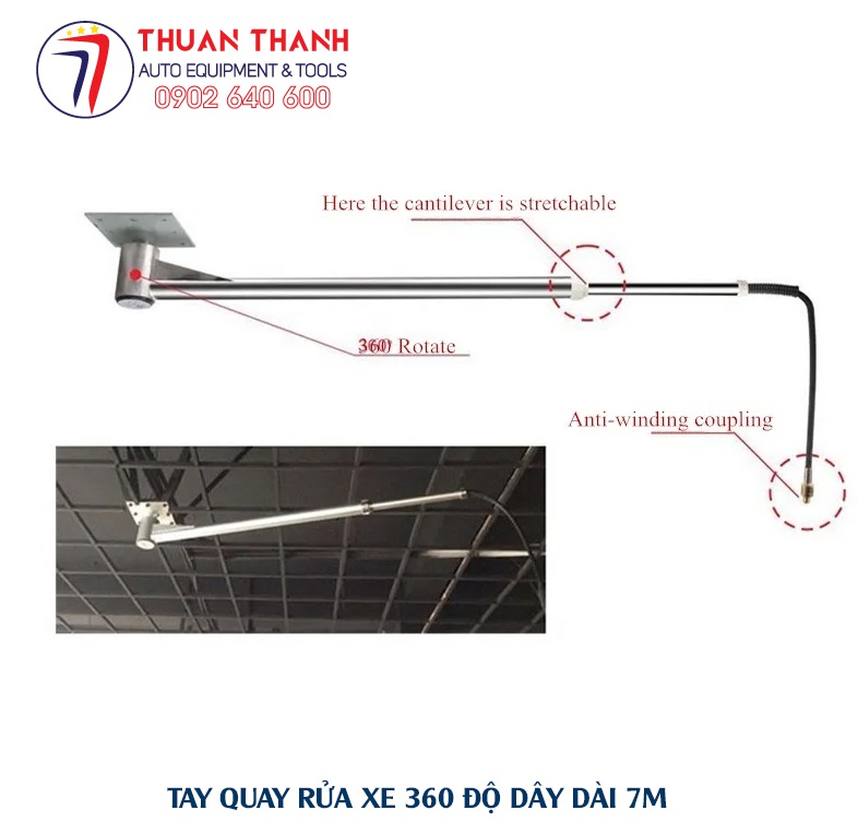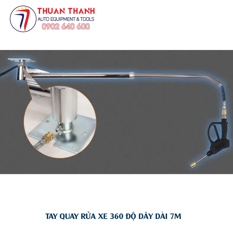 Tay quay rửa xe ô tô 360 độ gắn trần dây dài 7m, tay quay đơn