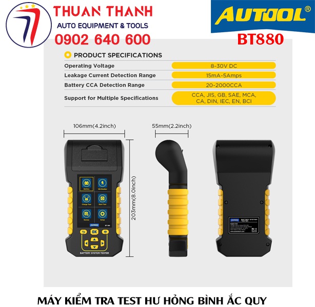 Thông số kỹ thuật máy kiểm tra bình ắc quy xe ô tô Autool BT880
