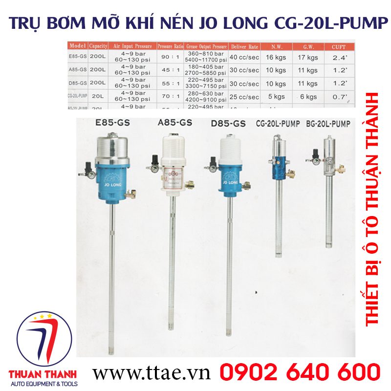 Trụ bơm mỡ bò công nghiệp Jo Long CG-20L-PUMP